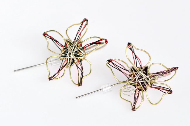 Wire flower art earrings, Sculpture contemporary jewelry