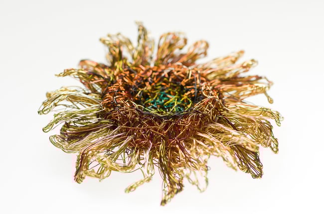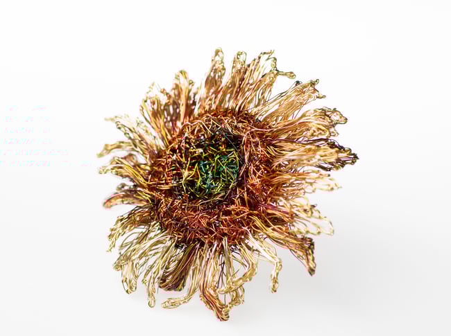 Wire Sculpture Sunflower Brooch: Copper & Silver Wearable Art Jewelry